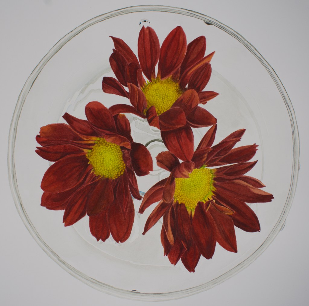 “Triplets “ was the third piece completed in my watercolor series, Floral Coupe. To date, I’ve completed a total of 3 pieces in the series.